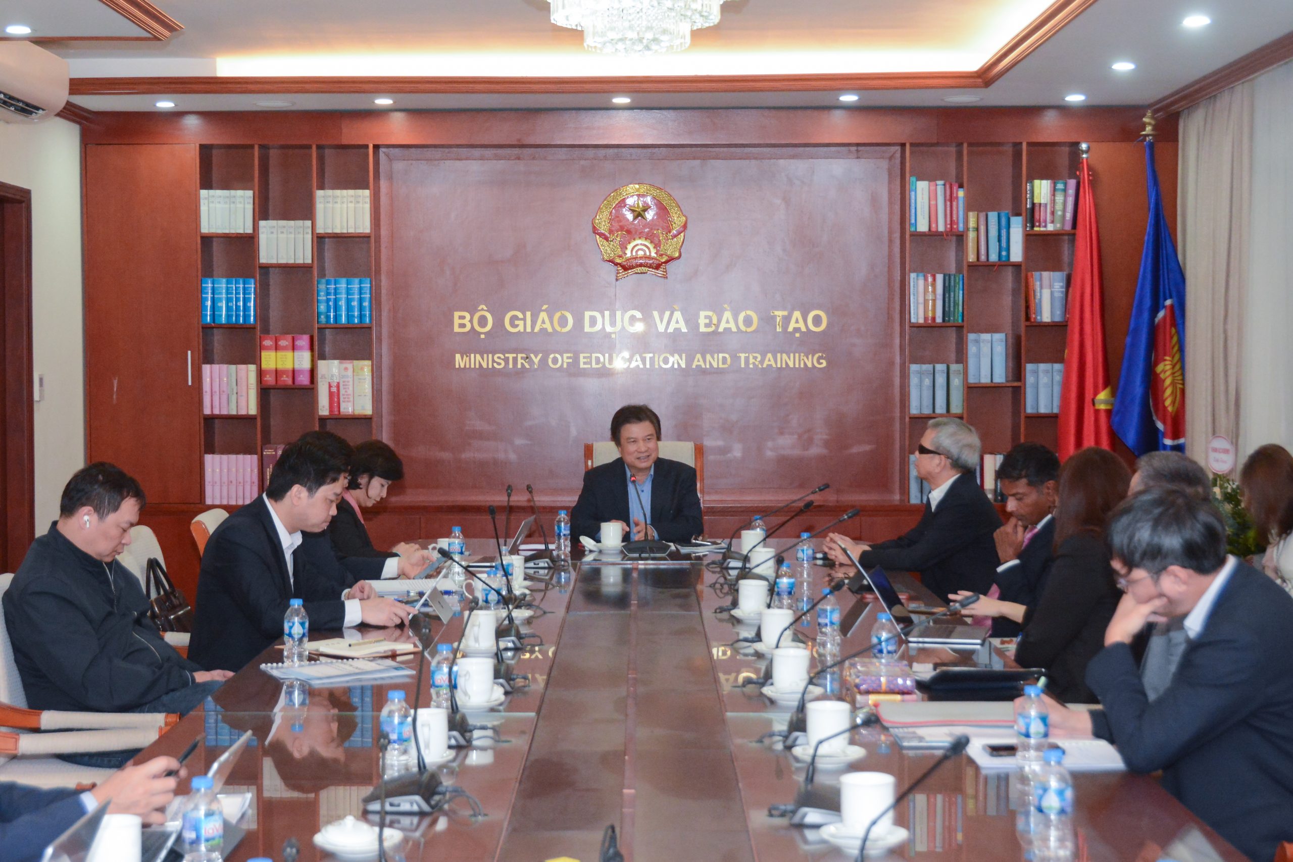 Kết thúc buổi làm việc, Thứ trưởng Nguyễn Hữu Độ mong muốn hai bên sẽ tăng cường trao đổi kinh nghiệm trong hoạt động đào tạo, chuyển đổi số, giáo dục trực tuyến, quản lý dạy và học…