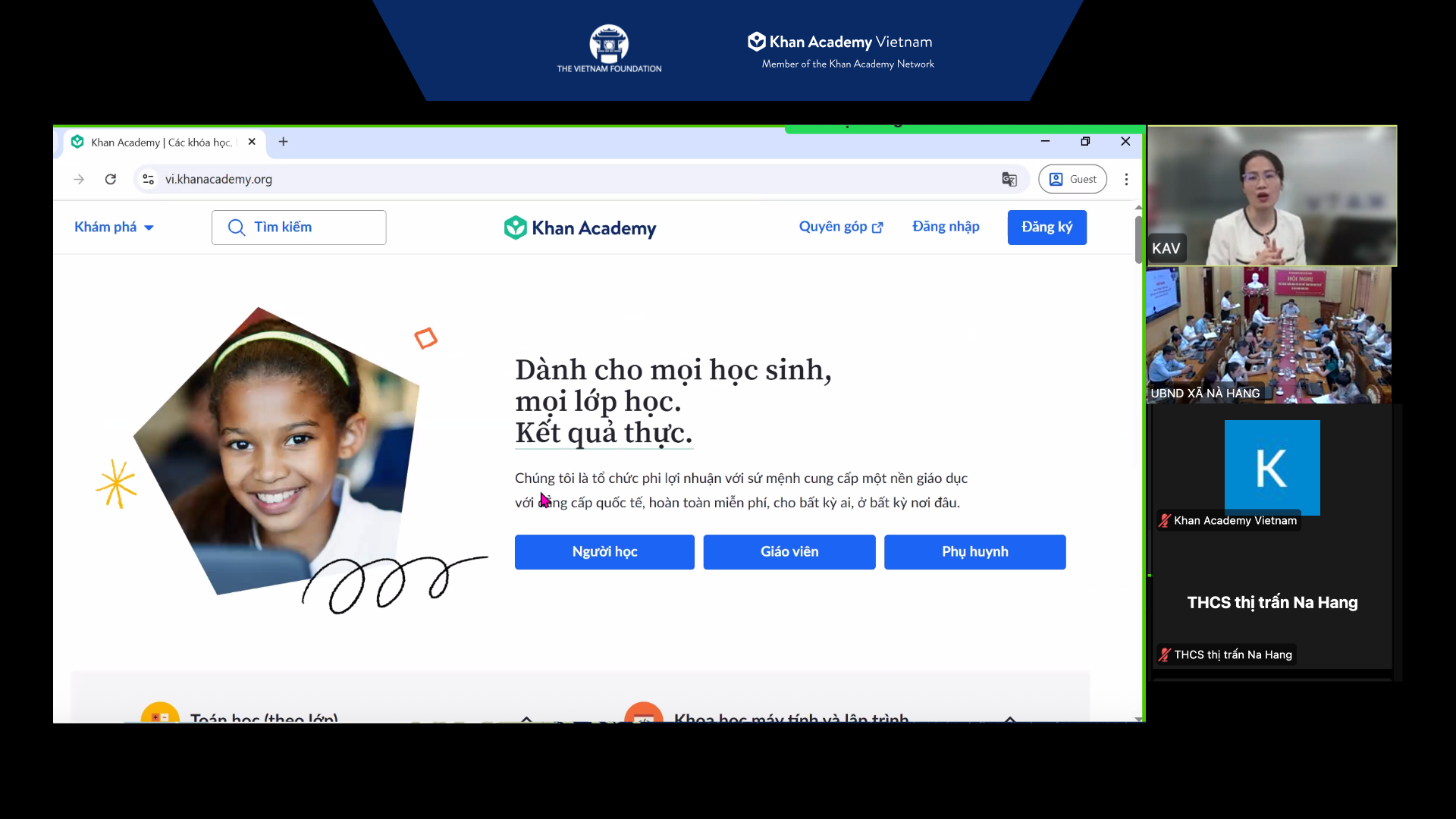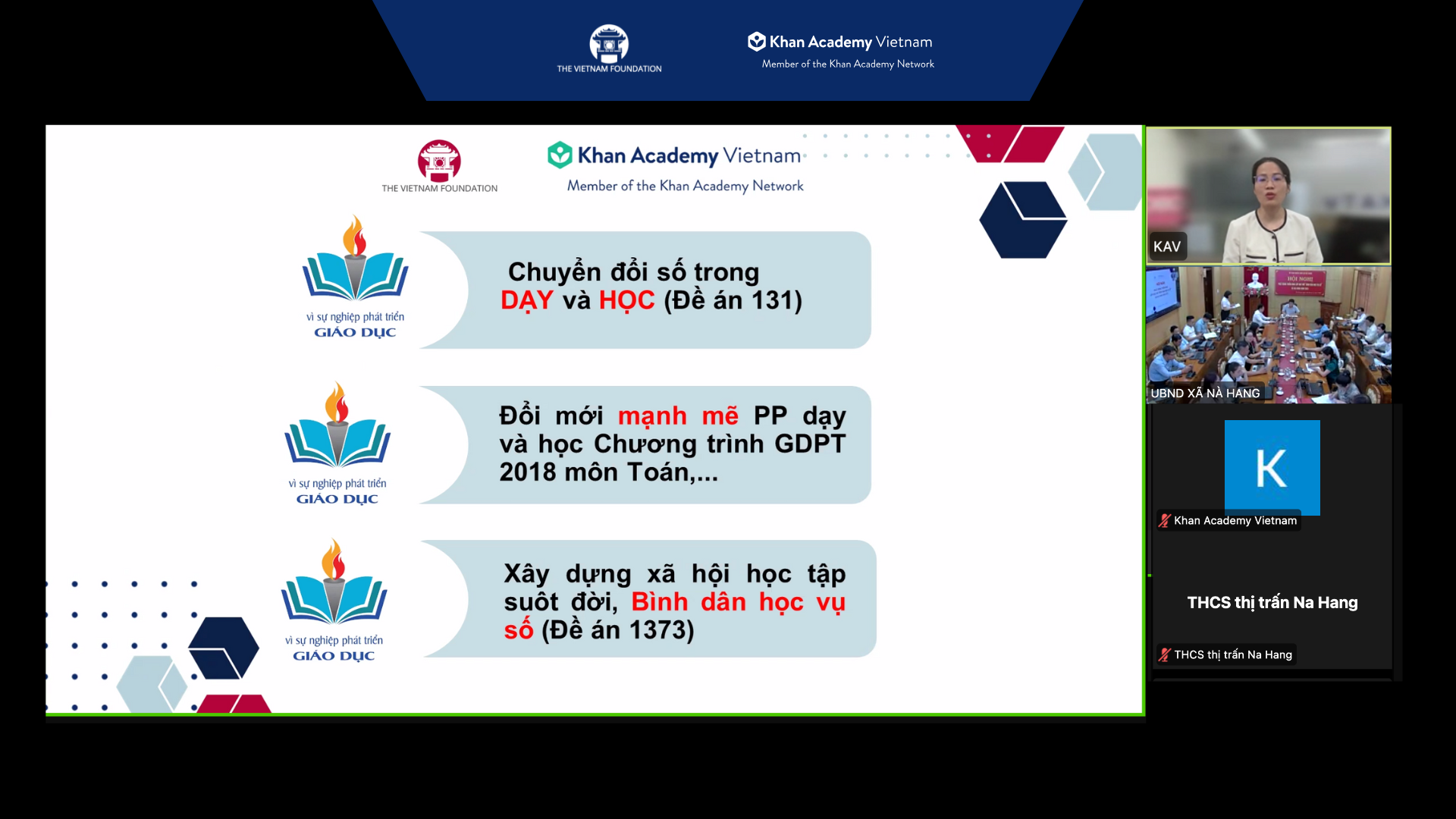Ngày 10/11/2025, Hội nghị phát động triển khai Lớp học mở “Bình dân học vụ số” đã diễn ra thành công với hai điểm cầu: điểm cầu trực tiếp tại Ủy ban Nhân dân xã Nà Hang, tỉnh Tuyên Quang và điểm cầu trực tuyến của Khan Academy Vietnam (KAV). Sự kiện đánh dấu bước tiến quan trọng trong nỗ lực đổi mới giáo dục và chuyển đổi số, đồng thời khẳng định vai trò tiên phong của KAV trong việc xây dựng “bình dân học vụ số”tại địa phương.