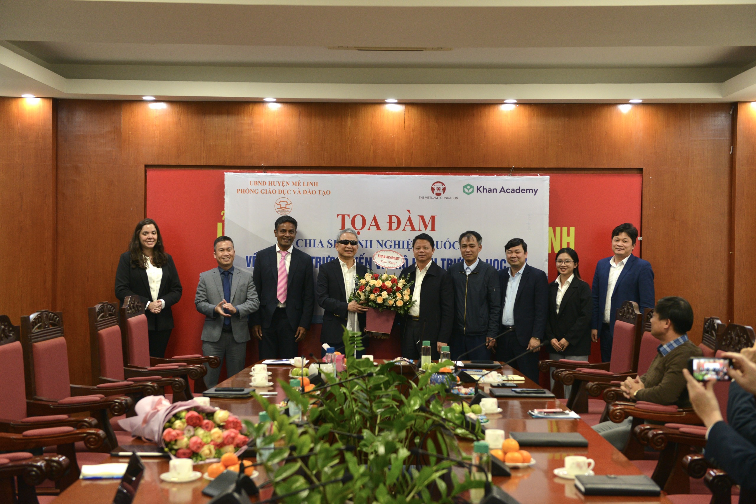Buổi toạ đàm diễn ra suôn sẻ với những điểm sáng về sự đánh giá cao của phòng, của các trường trên địa bàn huyện đang triển khai Khan Academy trong nâng cao chất lượng dạy – học. Ông Sandeep Bapna – Phó chủ tịch hợp tác quốc tế của Khan Academy cũng rất bất ngờ về những con số ấn tượng của thầy trò Mê Linh đang tiến hành với Khan Academy, cụ thể là với Khan Academy Vietnam.