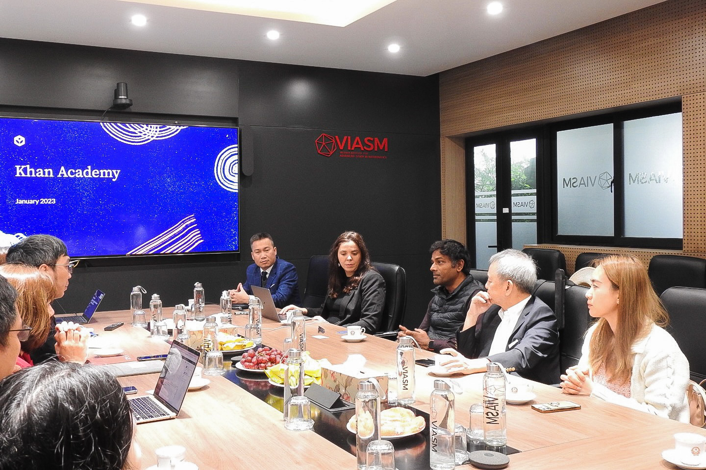 Viện Nghiên cứu cao cấp về Toán là một trong những đối tác chiến lược quan trọng của Tổ chức The Vietnam Foundation – đại diện chuyển ngữ chính thức và duy nhất của Khan Academy quốc tế trên lãnh thổ Việt Nam, trong chuyến gặp mặt trực tiếp tại Viện, Phó Chủ tịch Hợp tác Quốc tế của Khan Academy, ông Sandeep Bapna chia sẻ về niềm vui khi Khan Academy Vietnam có một tổ chức uy tín và có chuyên môn cao cấp quốc gia hợp tác. Tại đây, ông Sandeep cũng nói về Việt Nam như một điểm sáng trên bản đồ người dùng Khan Academy. Dựa trên kinh nghiệm triển khai Khan Academy tại các nước mà ngôn ngữ chính thức không là Tiếng Anh như Brazil, Ấn Độ, Peru,… việc dịch và bản địa hoá để phù hợp với người dùng tại đất nước bản địa là rất quan trọng.