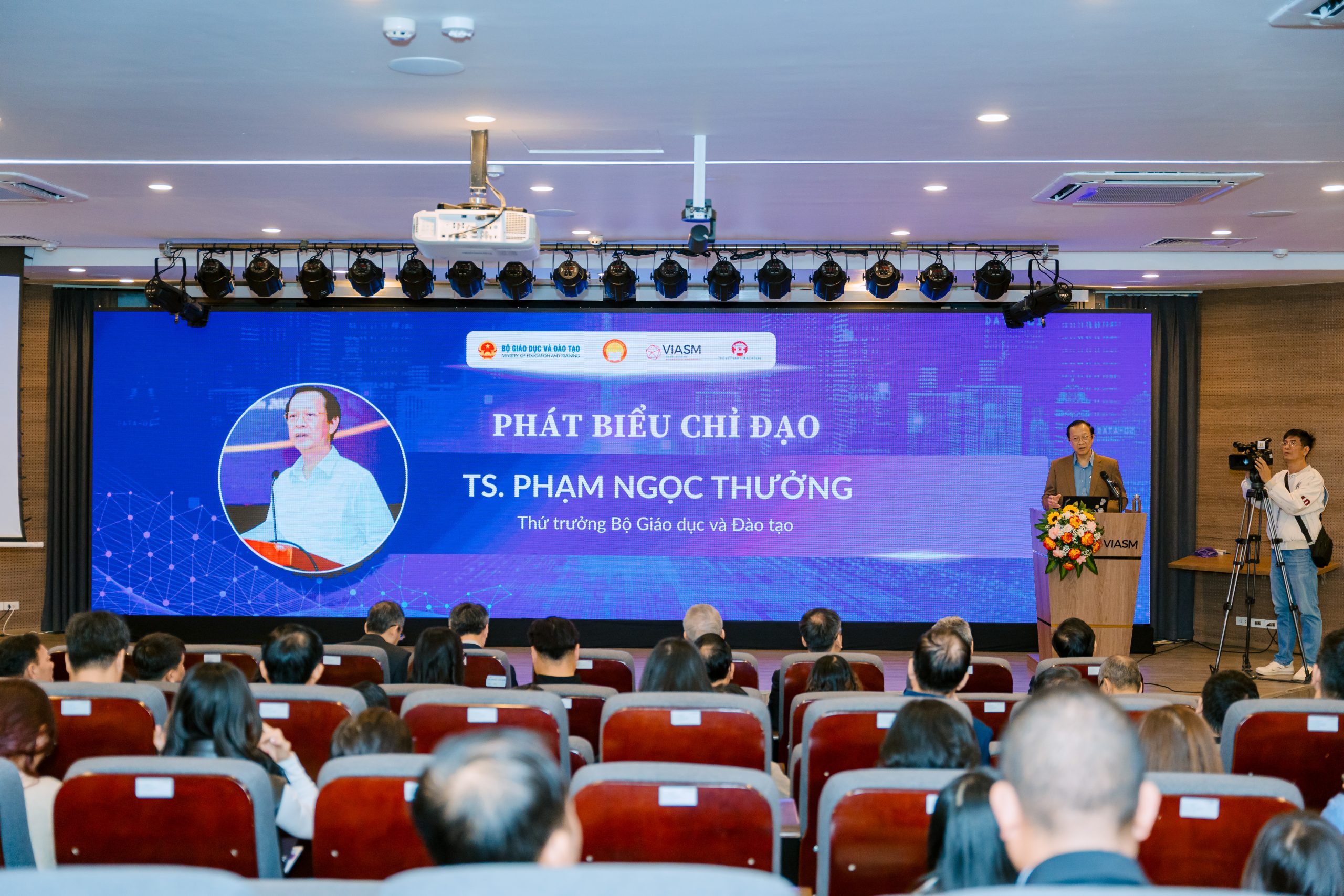 Phát biểu chỉ đạo tại sự kiện, TS. Phạm Ngọc Thưởng – Thứ trưởng Thường trực Bộ Giáo dục và Đào tạo nhấn mạnh: “Trong giai đoạn hiện nay, chuyển đổi số đã trở thành một trong những trụ cột quan trọng để nâng cao chất lượng giáo dục và quản lý nhà trường. Trí tuệ nhân tạo là bước tiến lớn trong công nghệ của nhiều thập kỷ qua và tạo những cơ hội chưa từng có về đổi mới phương pháp dạy học, đánh giá và quản lý.”