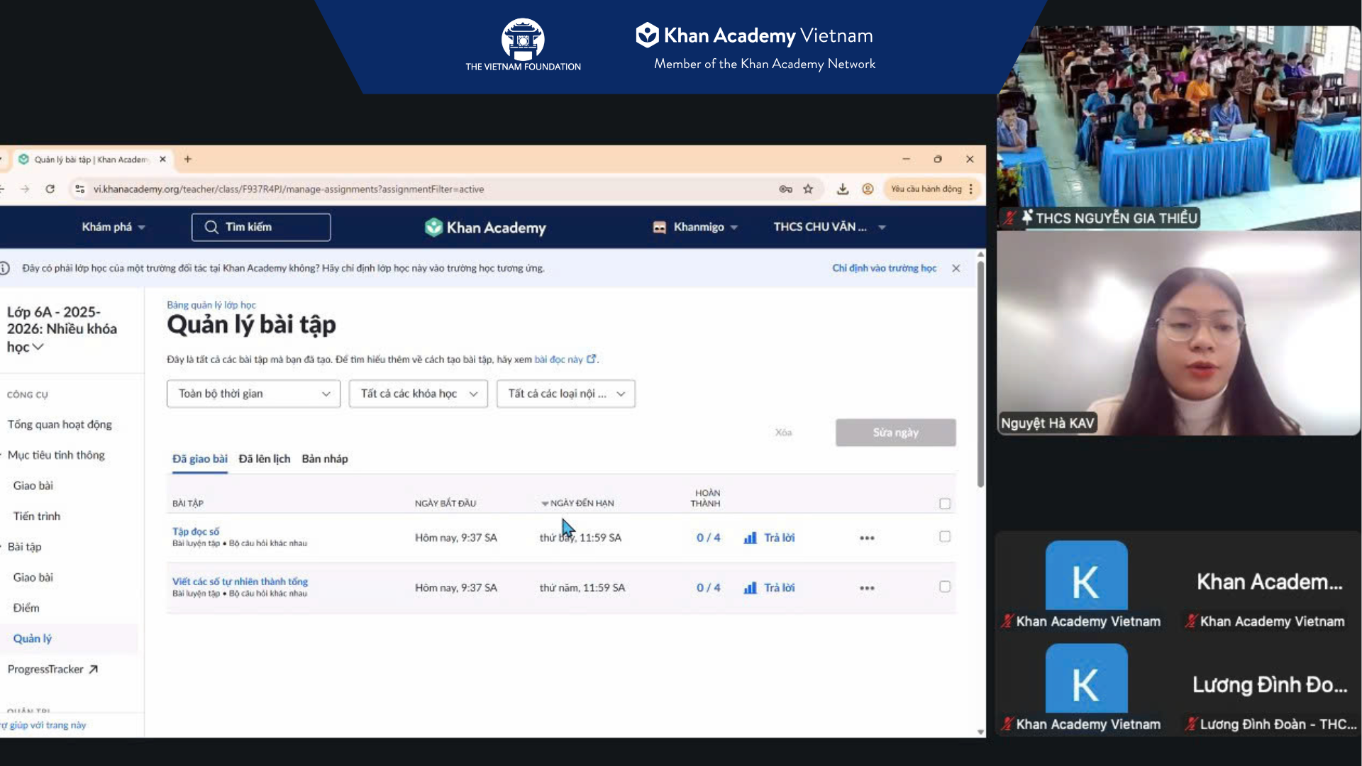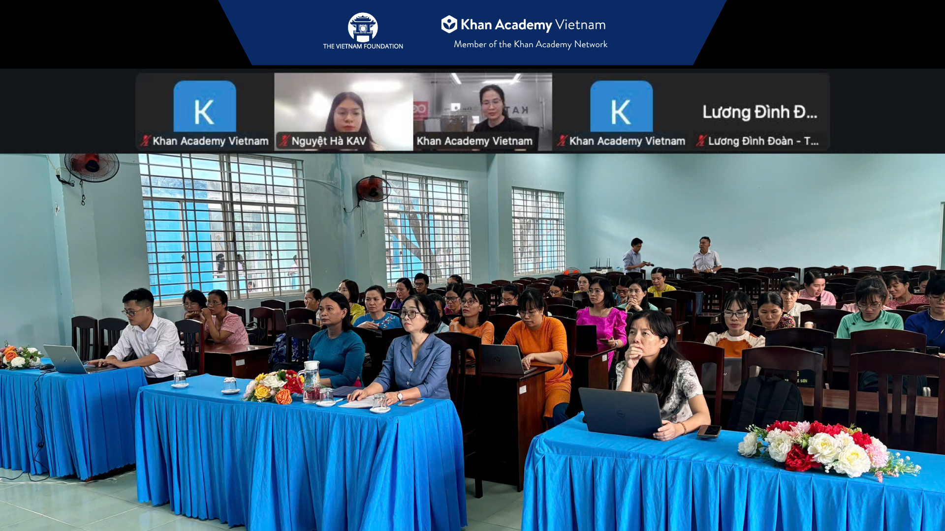 Trong phiên thực hành, đội ngũ KAV đã trực tiếp hướng dẫn giáo viên và cán bộ quản lý nhà trường các thao tác quản lý và sử dụng tài khoản Trường học mở KAV. Thông qua hoạt động này, các thầy cô được làm quen với cách vận hành nền tảng Khan Academy như một hệ thống LCMS, từ giao bài, theo dõi tiến độ học tập của học sinh đến khai thác các tài liệu học tập phục vụ công tác triển khai Trường học mở KAV trong năm học.