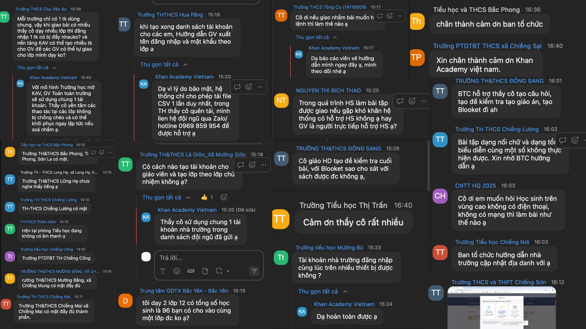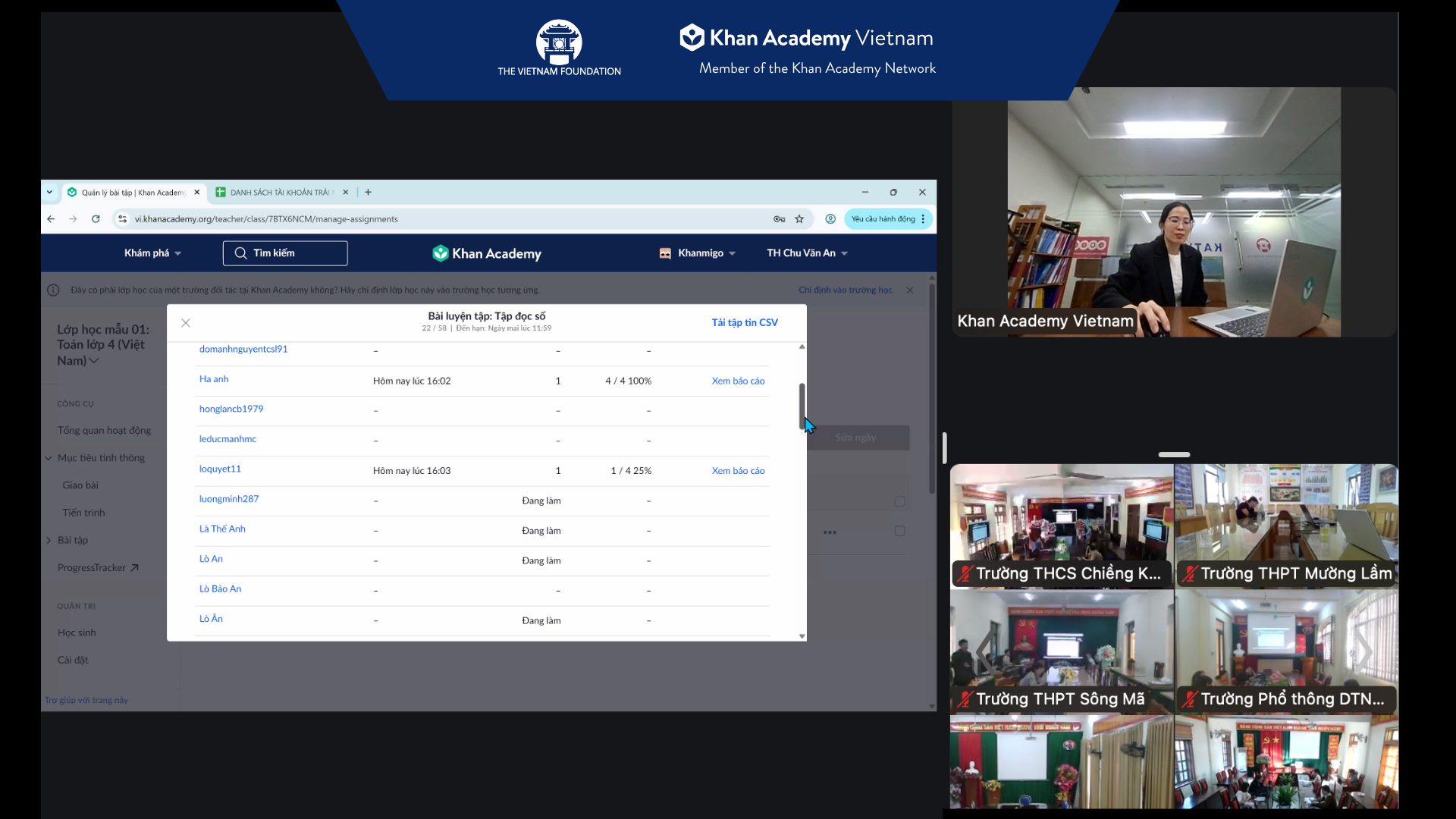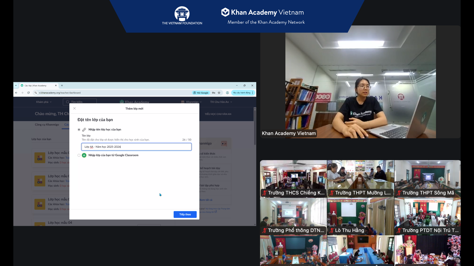 Xuyên suốt buổi tập huấn, các điểm trường toàn tỉnh Sơn La đã tích cực trao đổi và nhận giải đáp từ Đội ngũ KAV về các vấn đề kỹ thuật và chuyên môn có thể phát sinh trong quá trình triển khai thực tế tại nhà trường, cách khai thác hiệu quả các nội dung môn Toán trên nền tảng Khan Academy nhằm nâng cao chất lượng dạy và học.