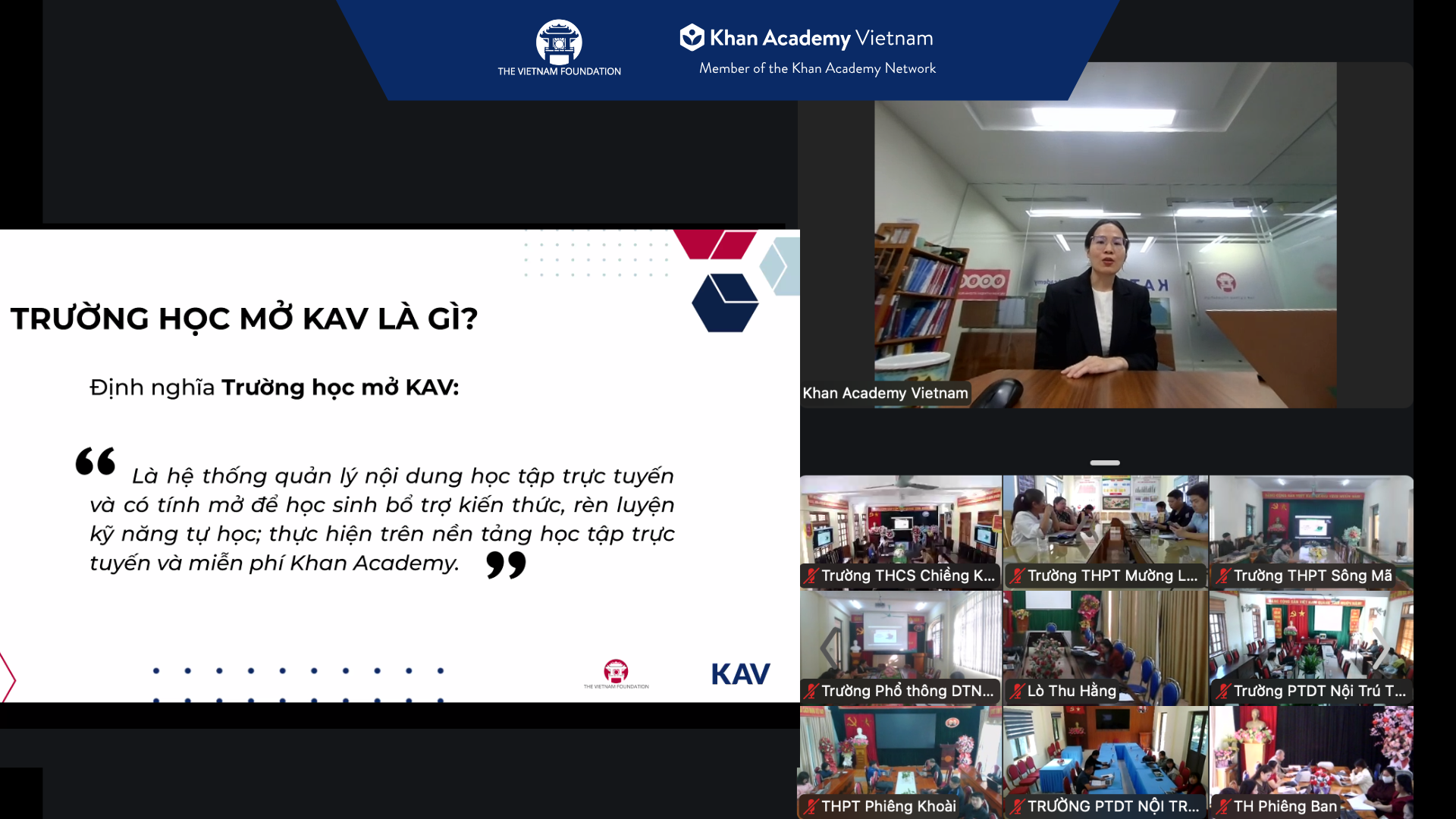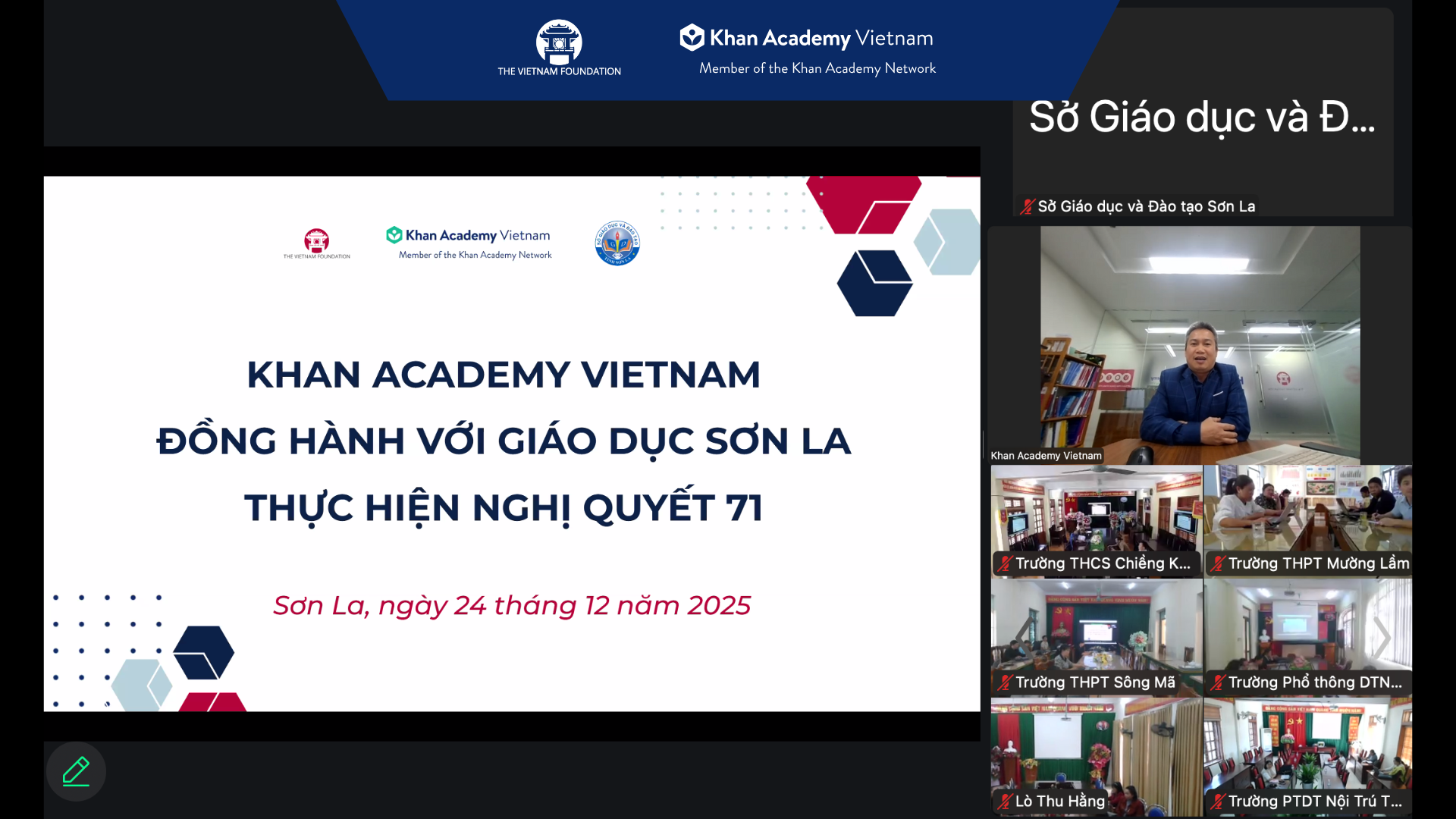 Ngày 24/12, Sở Giáo dục và Đào tạo (GDĐT) Sơn La phối hợp với tổ chức The Vietnam Foundation (VNF) tổ chức tập huấn sử dụng mô hình Trường học mở KAV trên nền tảng Khan Academy dành cho các cơ sở giáo dục cấp phổ thông và giáo dục thường xuyên. Chương trình tập huấn được kết nối trực tuyến đến 381 điểm cầu cơ sở giáo dục trong toàn tỉnh.