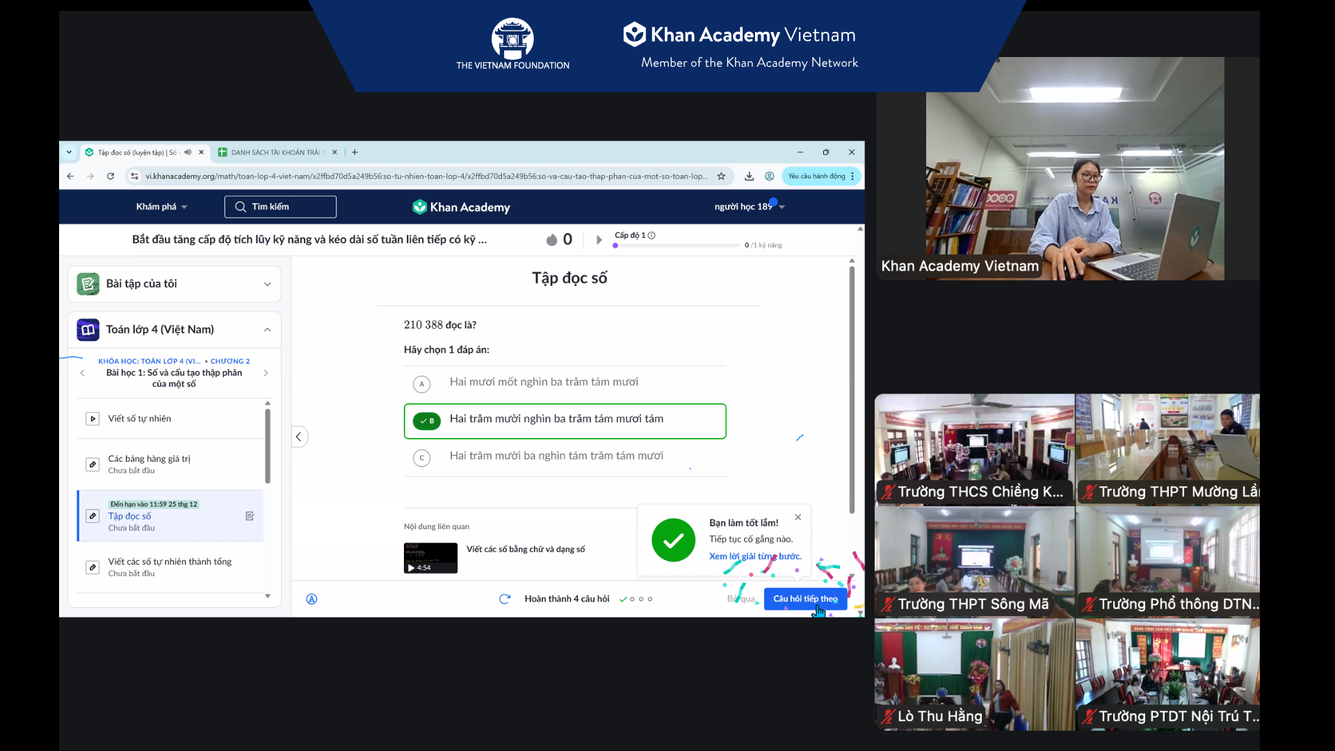 Phiên tập huấn thực hành trên nền tảng Khan Academy với vai trò học sinh